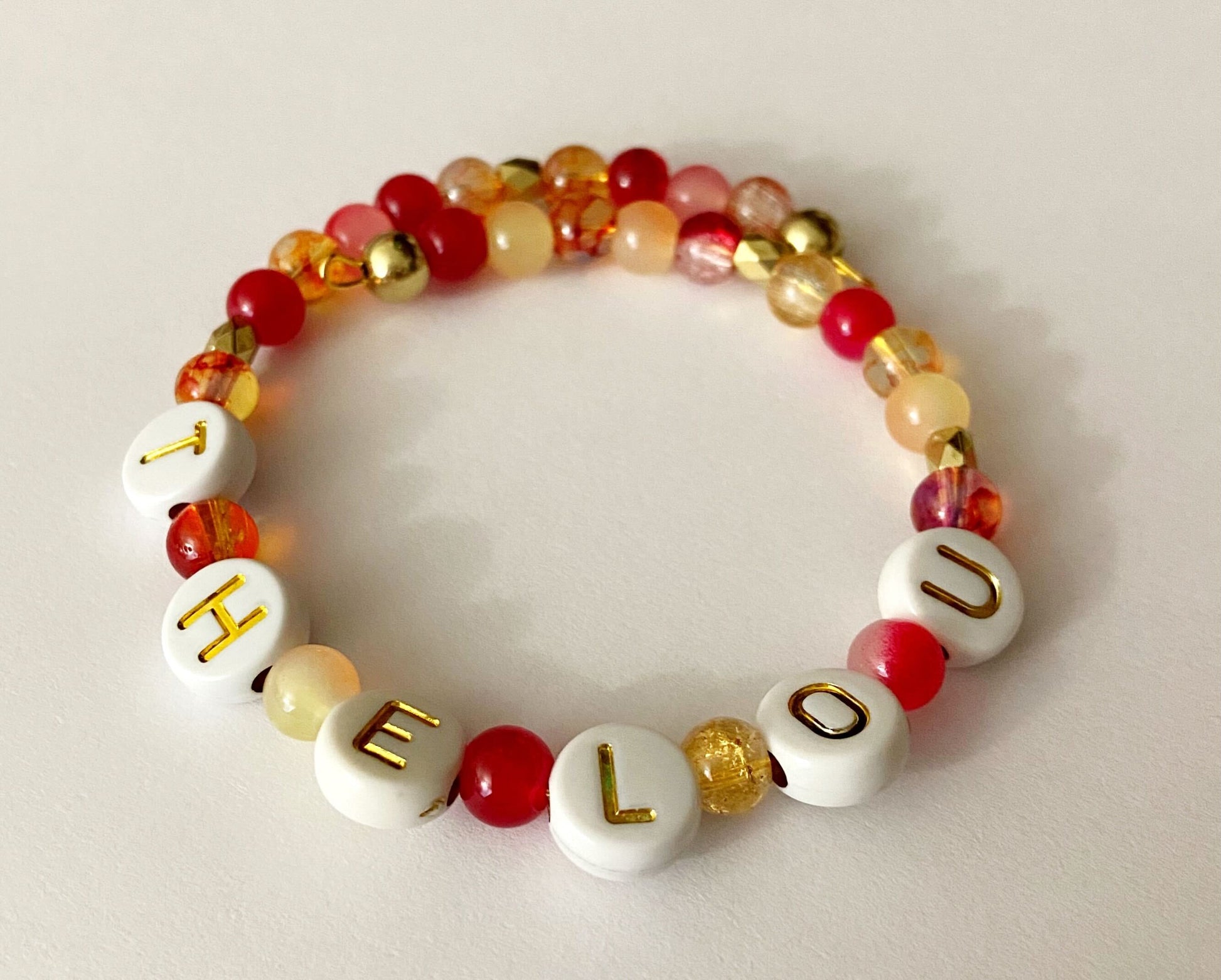 Handmade beaded bracelets on a one-size-fits-all wire base.