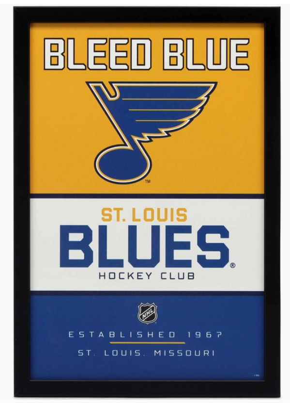 Make a classy and timeless tribute to your favorite NHL team with this colorful and sophisticated wall decor. With its framed design, it's sure to fit right in among decor of any style. Featuring the St. Louis Blues logo and team colors of royal blue, gold, and white, this charming sign will help set the scene as you cheer our team to victory or tide you over until hockey season finally rolls around again.