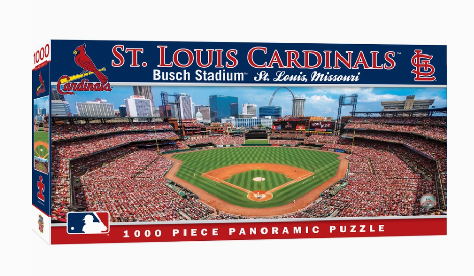 This 1000pc 13" x 39" Panoramic St. Louis Cardinals MLB Puzzle features the view from behind home plate of the St. Louis Cardinals' Busch Stadium with such incredible detail that it's common for you to find yourself as part of the photograph! To reduce its impact on our environment, the chipboard used in this puzzle is made of recycled material.