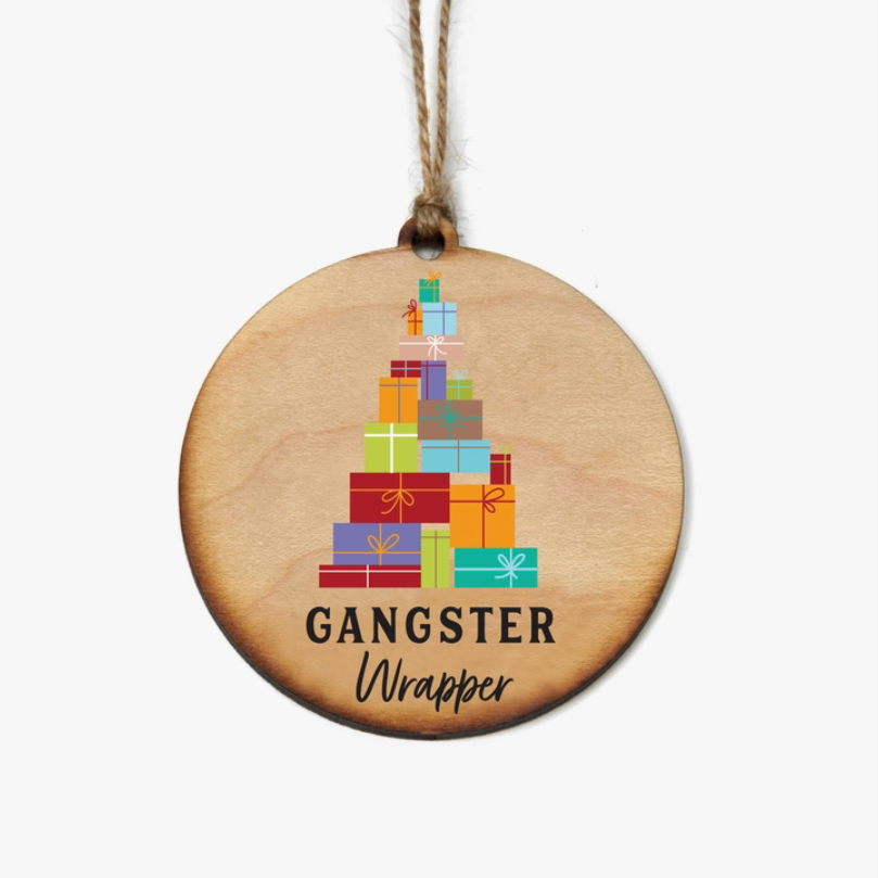 3.25" round wood ornament. Design printed directly onto wood with durable nontoxic ink that will not fade or peel.