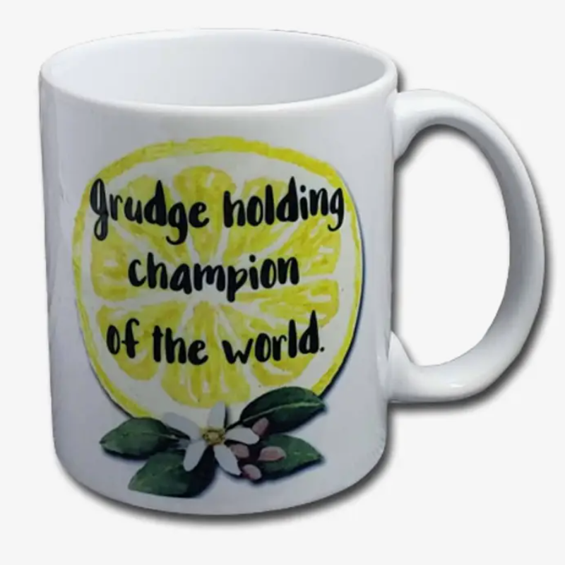 11oz white ceramic mug. Dishwasher and microwave safe.