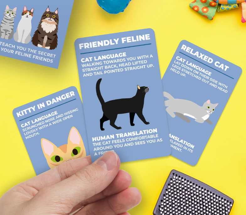 Ever wonder what your feline friend is trying to say to you? Maybe they are hungry, bored or just want a chat! This deck of cards will help you understand your cat better by helping you decipher general cat like behavior and what it means!