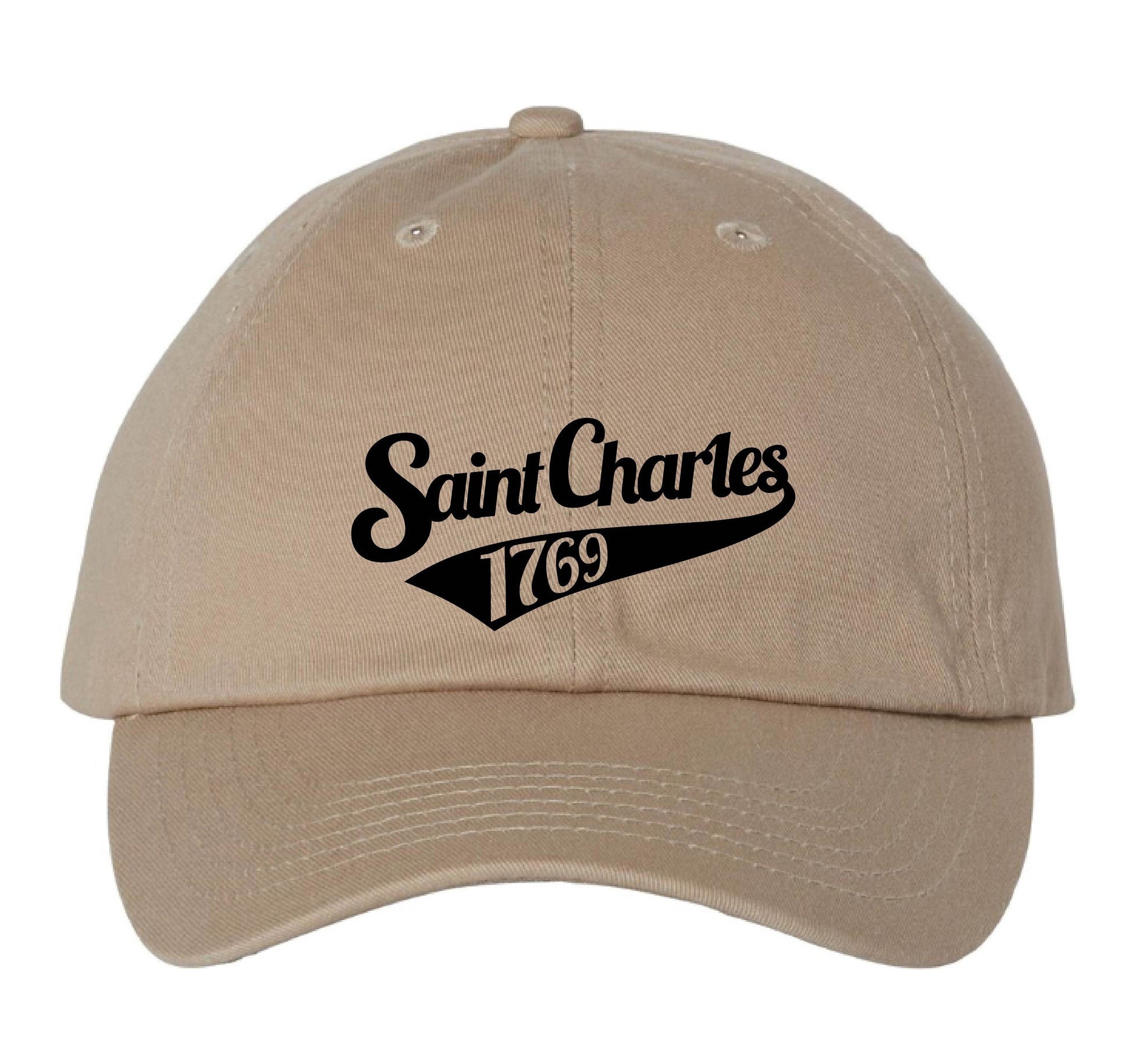 Gear up for a home run of style with our “SAINT CHARLES 1769” Hat – a bold nod to the city’s founding year. Picture sleek, script-like writing inspired by classic baseball jerseys. Whether you’re catching a game or owning the streets, the “SAINT CHARLES 1769" Hat is your ticket to showcasing rich history and contemporary coolness.