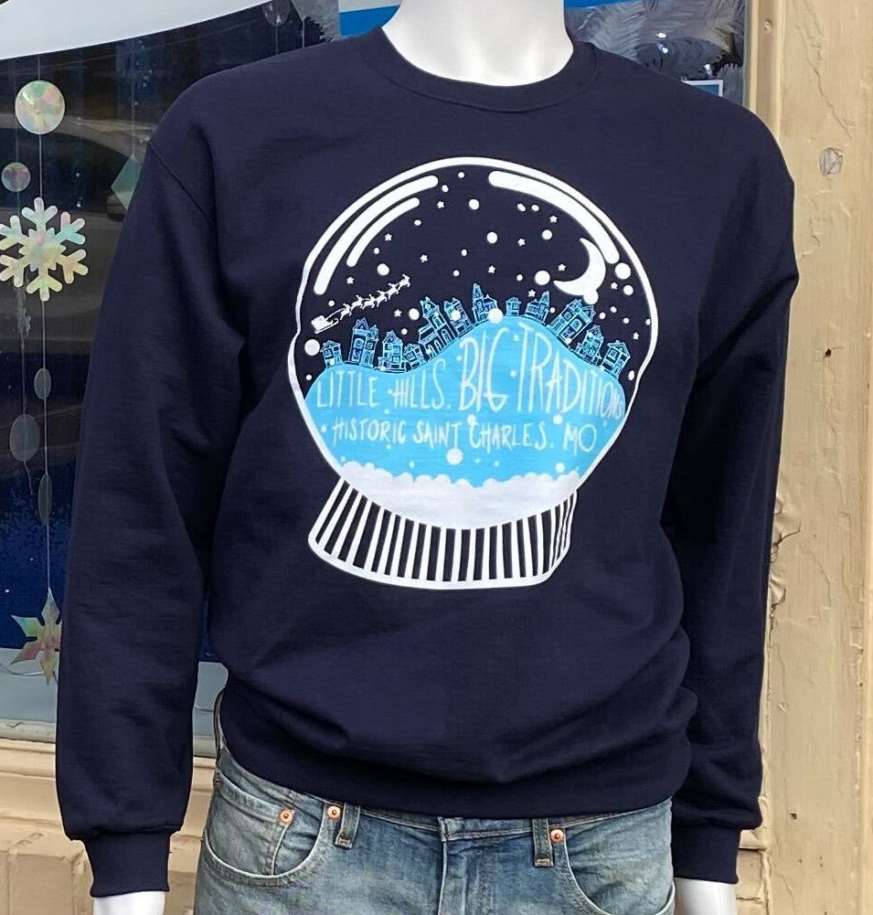 For the perfect small town holiday feel wrap yourself in this cozy Main Street St. Charles sweatshirt!