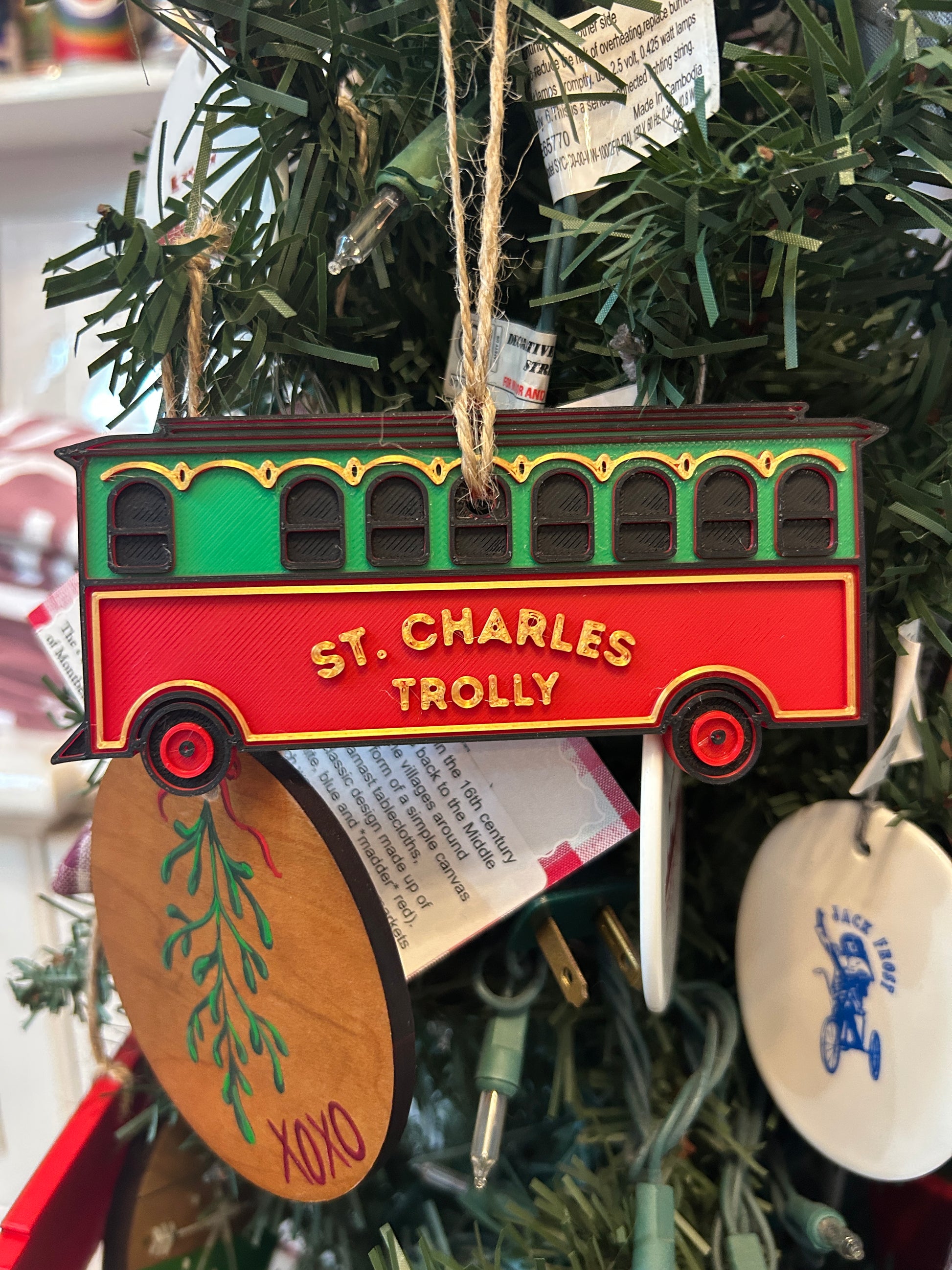 Celebrate the spirit of St. Charles with the Trolley Ornament 2025, a finely crafted tribute to the city's iconic Main Street trolley and festive Christmas holiday. Expertly hand-drawn and designed locally, this ornament captures the charm and heritage of St. Charles, making it a meaningful addition to your holiday décor or a cherished keepsake for collectors.