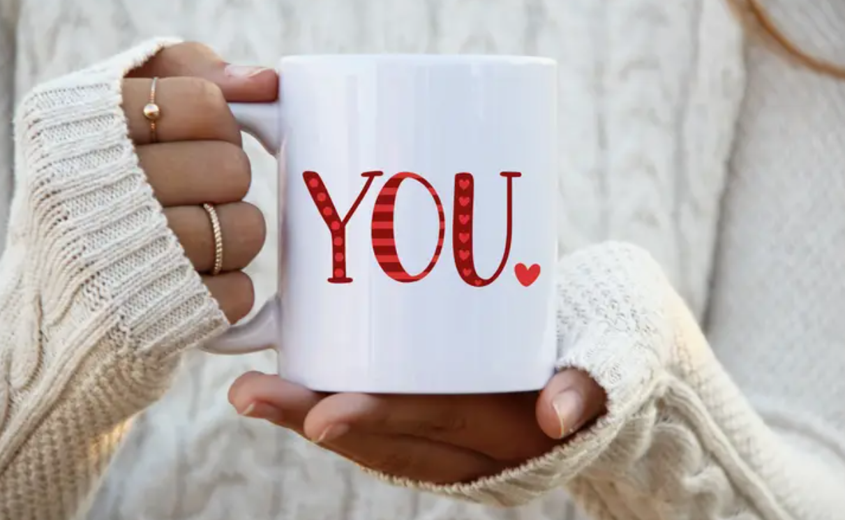 11oz white ceramic mug. Dishwasher and microwave safe.